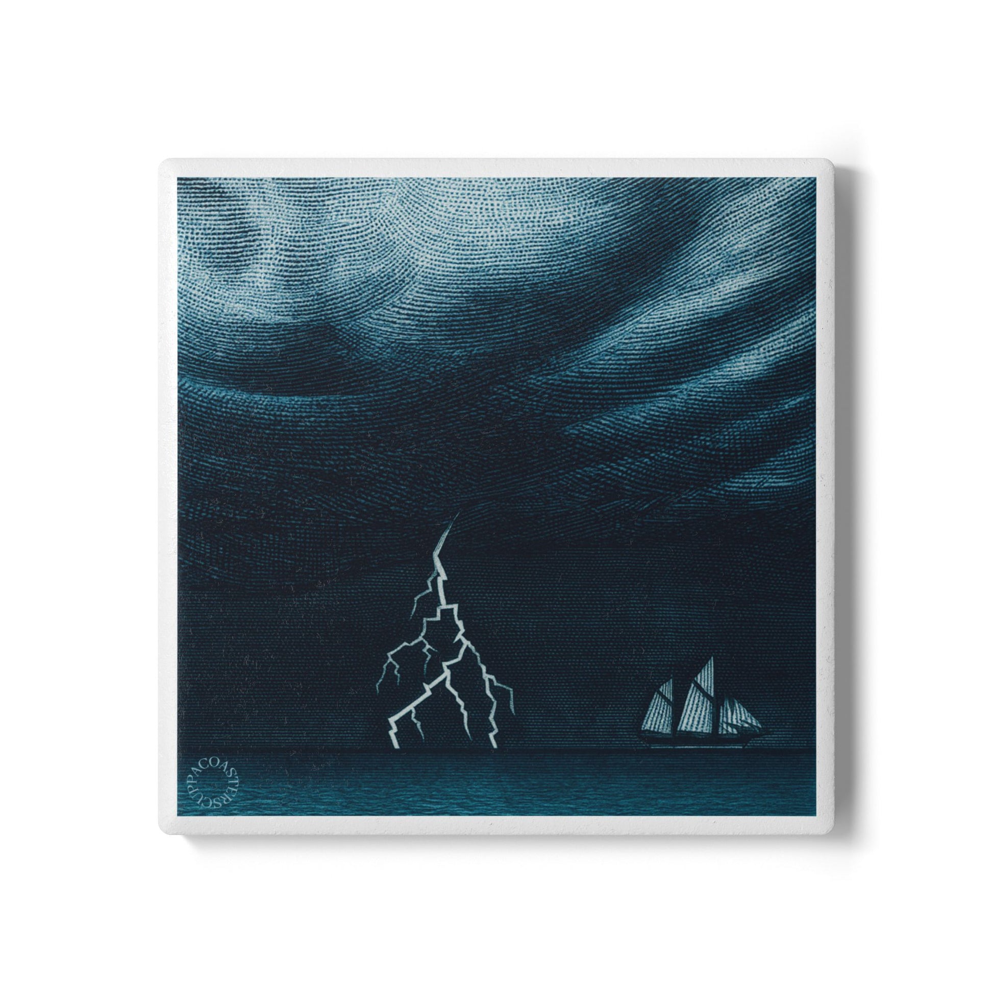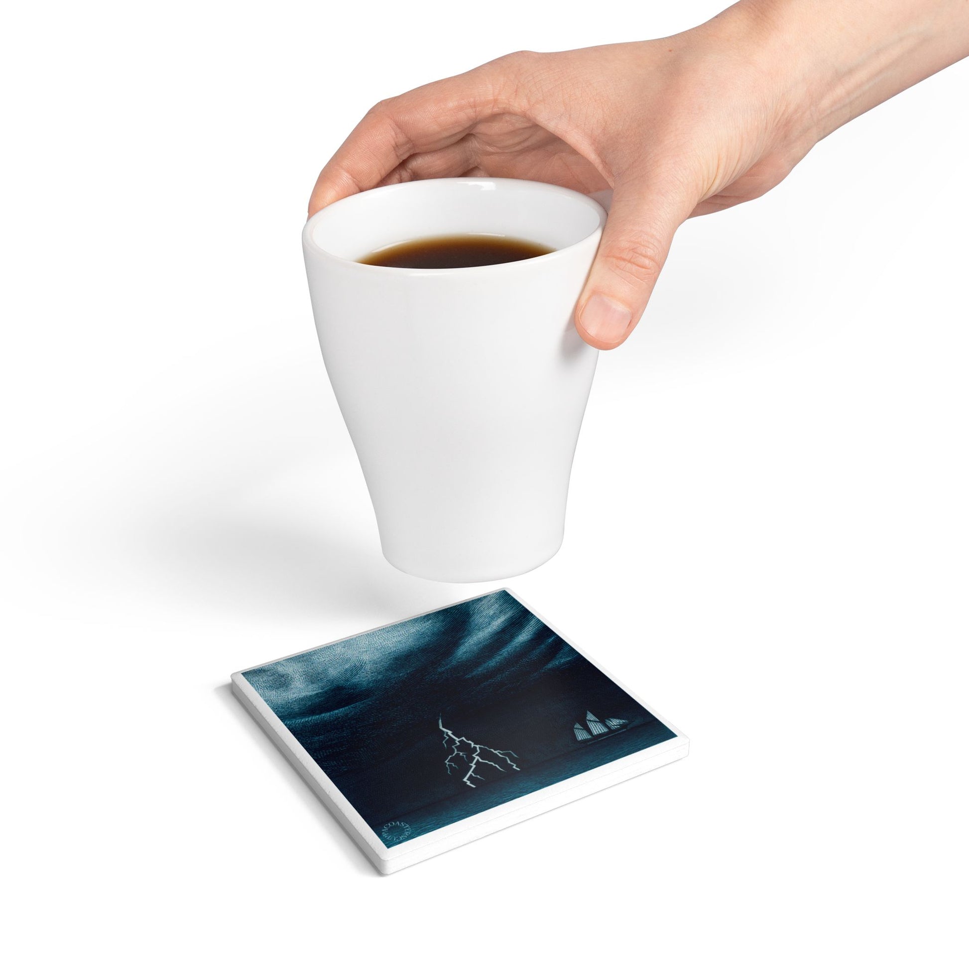 ⚡ Tempest Voyage Ceramic Coaster – Storm and Sea Minimalist Art