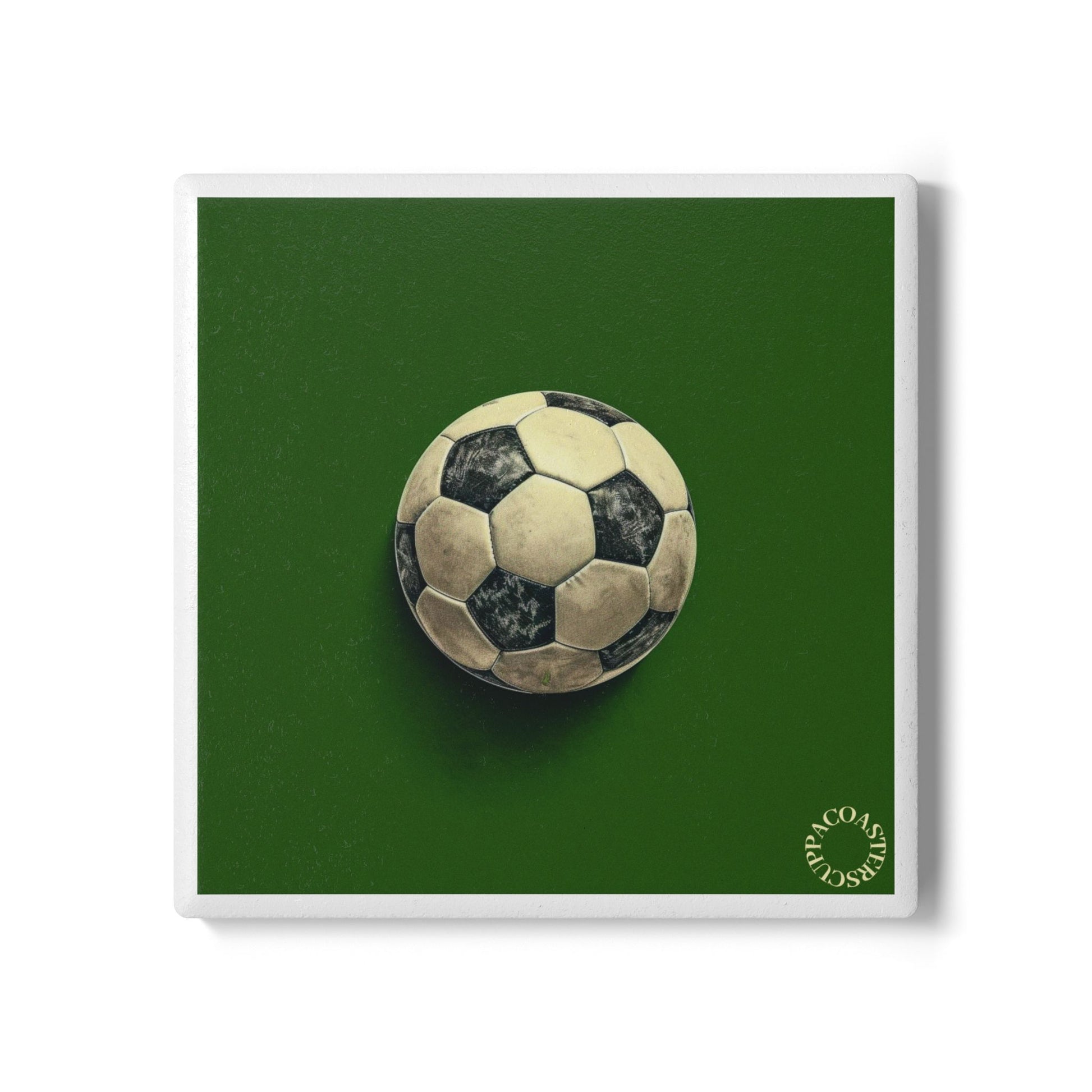 Celebrate the timeless spirit of the game with the Football ceramic coaster — a minimalist design capturing the classic black-and-white ball against a rich green field. Perfect for sports fans, coaches, or anyone who lives for match day.
