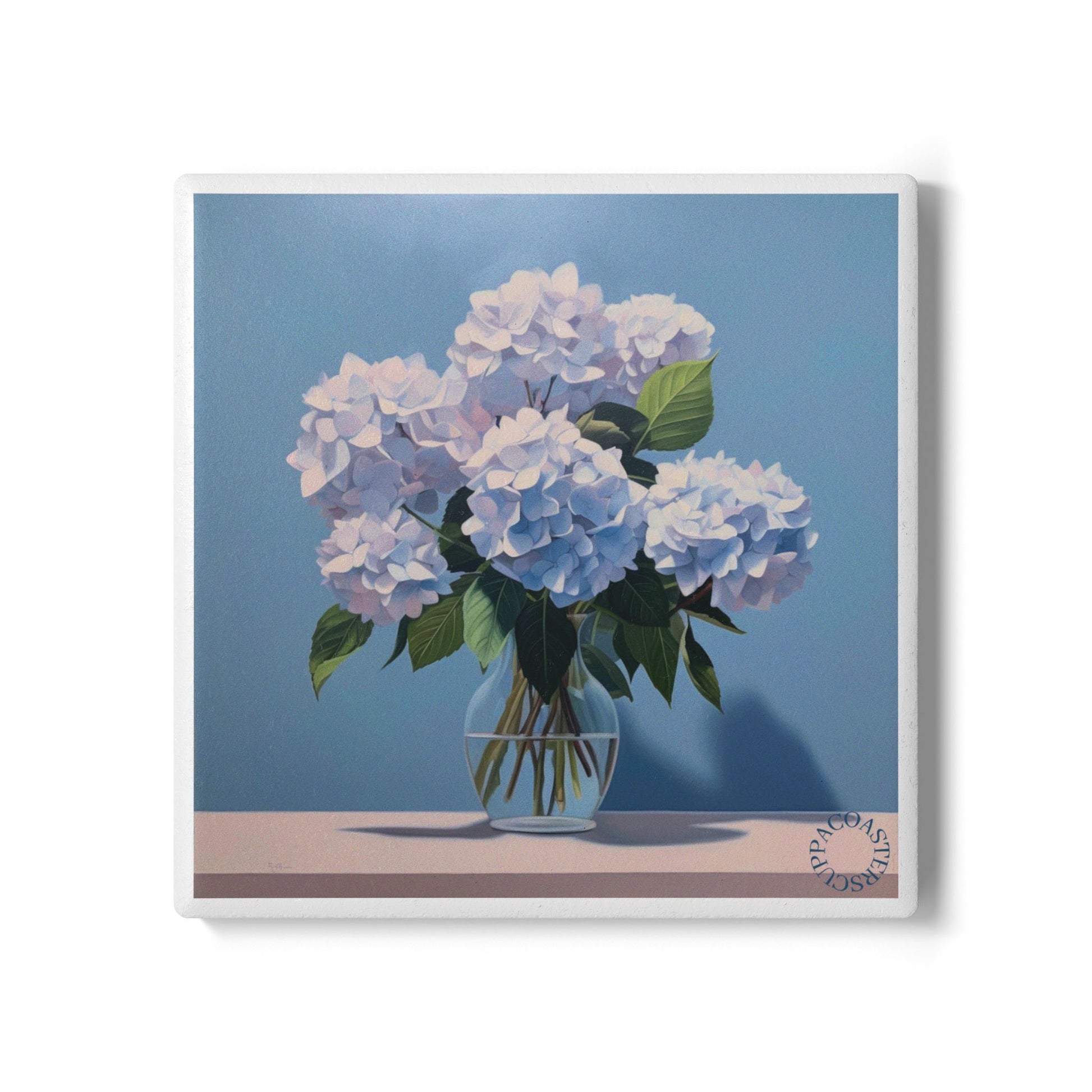 Elegant and serene — the Hydrangea ceramic coaster captures the gentle beauty of pastel blossoms in full bloom. The delicate petals and soft blue tones evoke stillness and grace, making it a perfect addition to any refined interior.