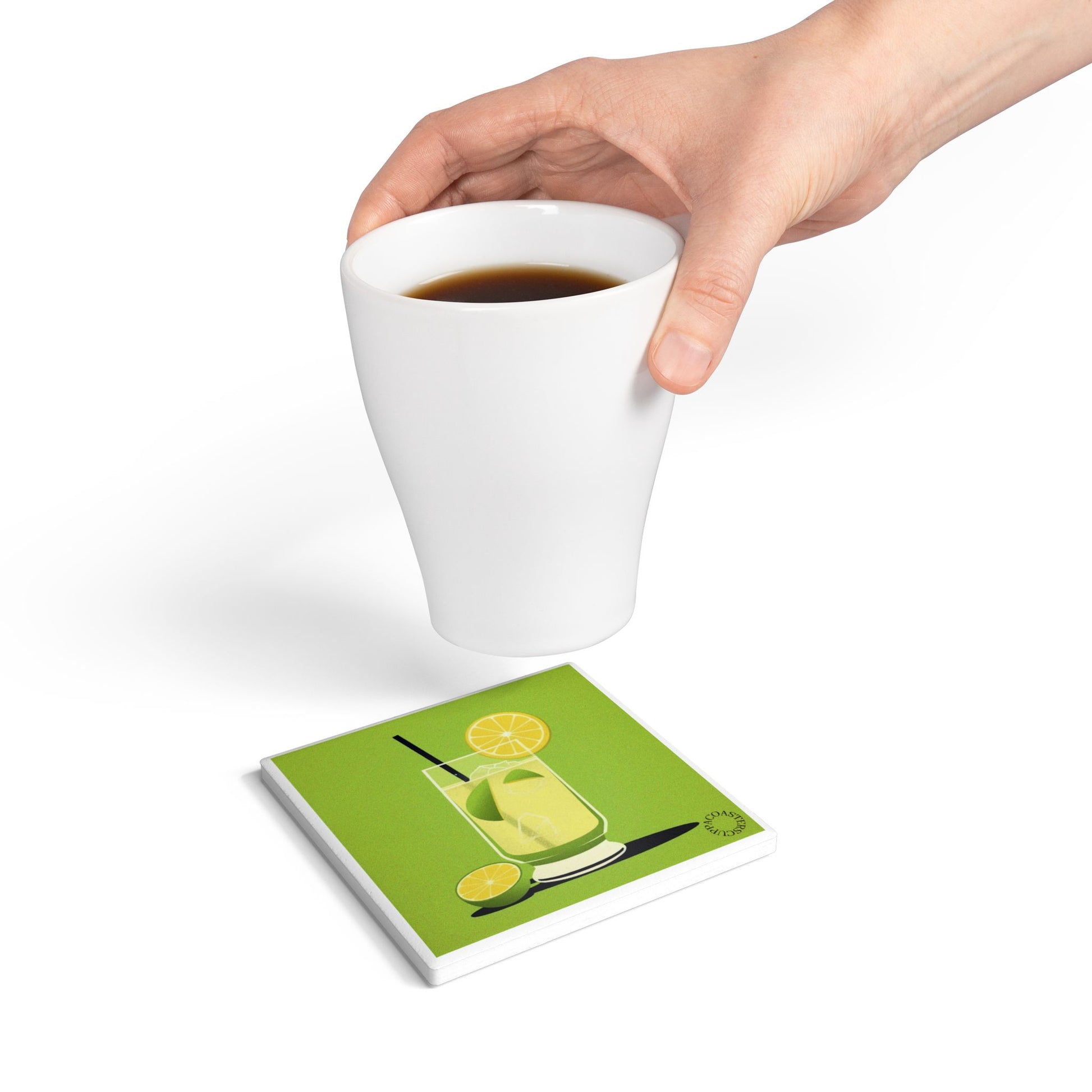 Crisp, cool, and full of summer energy β€” the Zesty Lemonade ceramic coaster refreshes your table with its vibrant lime-green palette and minimalist design. The illustrated glass, citrus slices, and straw evoke the feel of a perfect sunny afternoon drink.