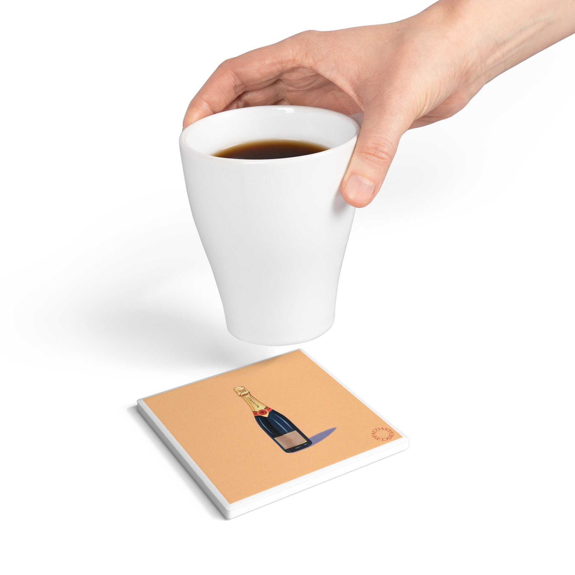 🍾 Pop the Bubbly Ceramic Coaster – Champagne Celebration Art