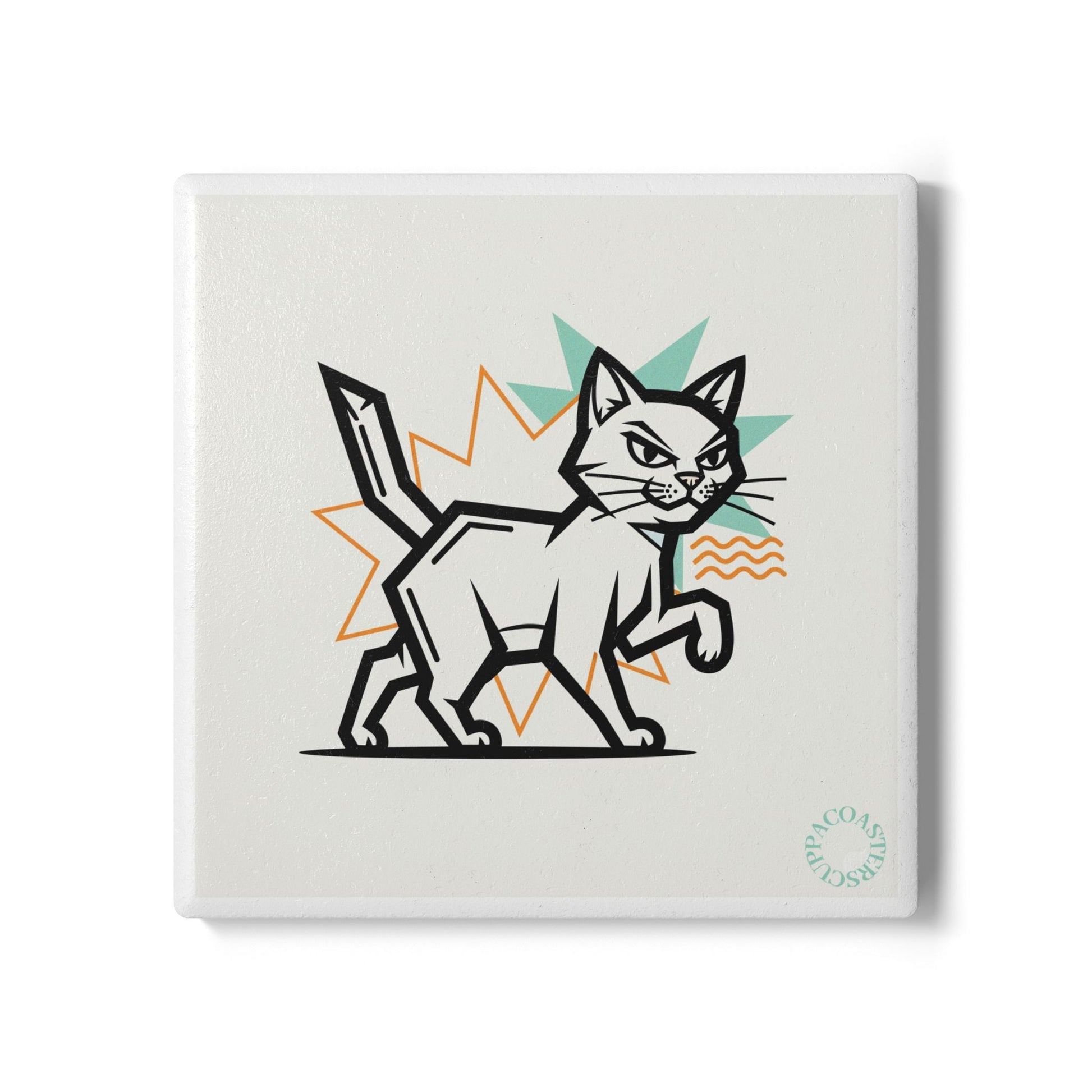 🐾 Attitude Cat Ceramic Coaster – Retro Graphic Feline Design