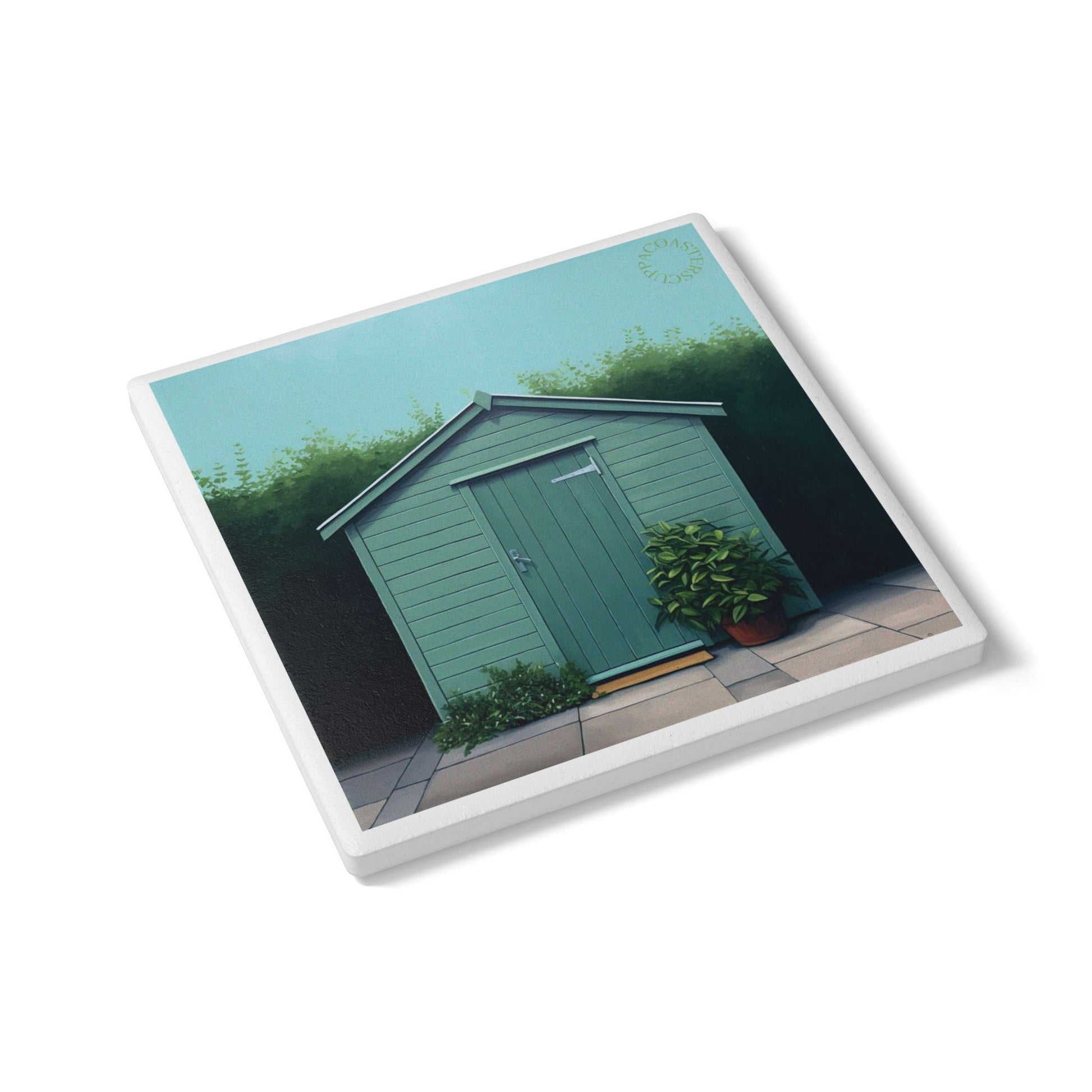 Garden Shed Ceramic Coaster – Calm Outdoor Charm for Coffee Tables 🌿